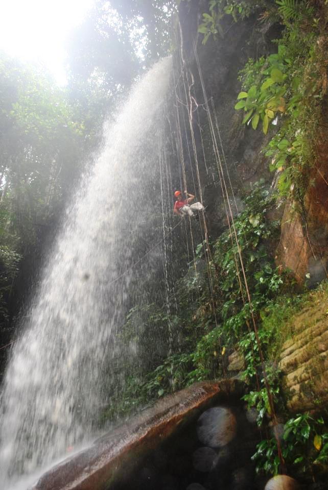 – Há uma equipe de rapel que de vez em quando costuma praticar a atividade no paredão da cachoeira. Se tiver interesse, você pode se informar no CAT sobre a programação deles.