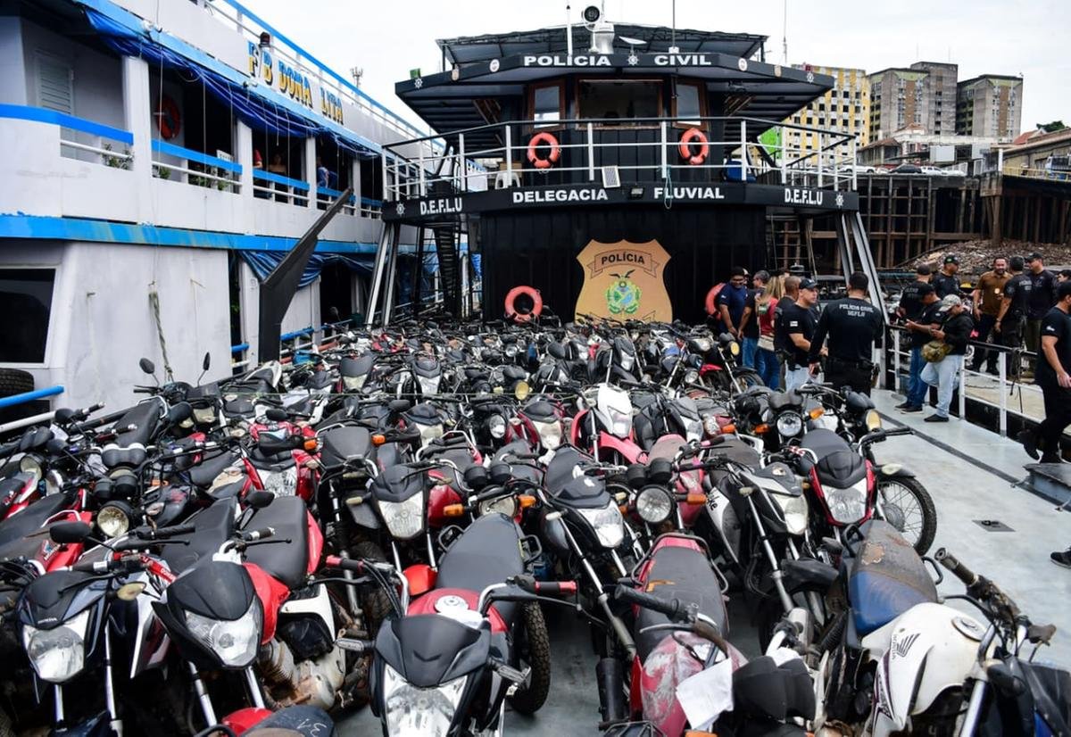 Na manhã desta sexta-feira (31), a Polícia Civil do Amazonas apresentou na Base Fluvial os resultados da “Operação Rota Interrompida”, que culminou na recuperação de 132 motocicletas roubadas ou adulteradas em diversos municípios do estado. A ação foi coordenada pela Delegacia Especializada em Roubos e Furtos de Veículos (DERFV), com apoio do Departamento de Polícia do Interior (DPI), da Delegacia Fluvial (DEFLU) e das Delegacias Interativas de Polícia (DIPs).