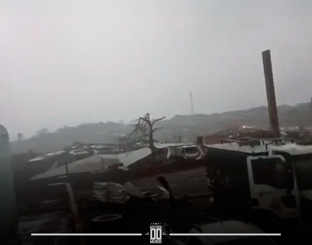 Um tornado de grande intensidade atingiu o município de Rio Bonito do Iguaçu, no Centro-Sul do Paraná, no fim da tarde desta sexta-feira, transformando a paisagem urbana em um cenário de destruição. Casas, comércios e prédios públicos foram atingidos por ventos tão fortes que arrancaram telhados inteiros, derrubaram árvores e viraram veículos nas ruas.