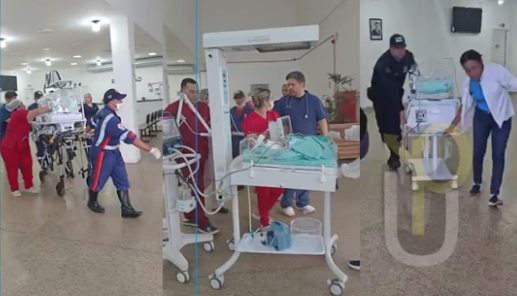 A chegada foi segura. Os bebês foram entregues à equipe especializada e imediatamente encaminhados à unidade neonatal.